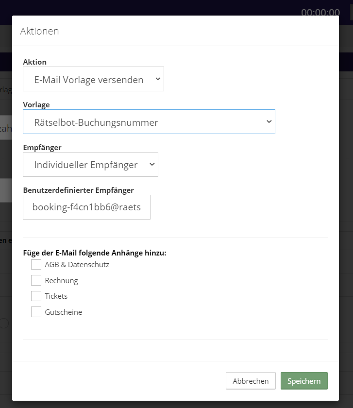 Beispiel: booking-ae23c4d1@raetselbot.de -> Rätselbot-Buchungsnummer: 0238945123