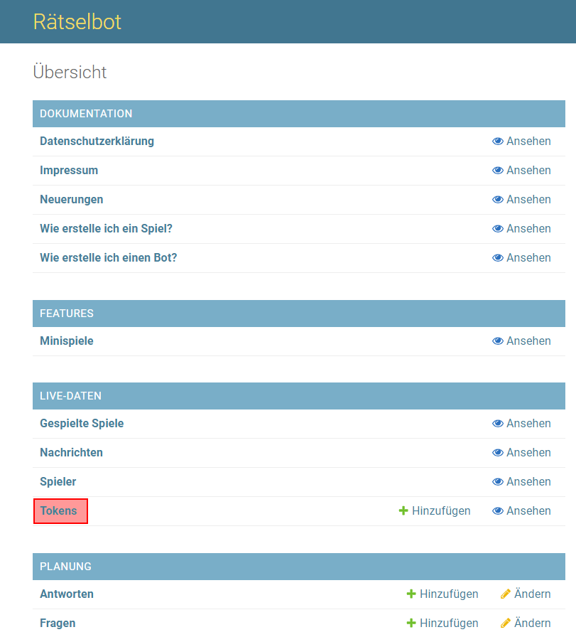 Alle importierten Buchungsnummern sind in der Rätselbot-Oberfläche einsehbar.