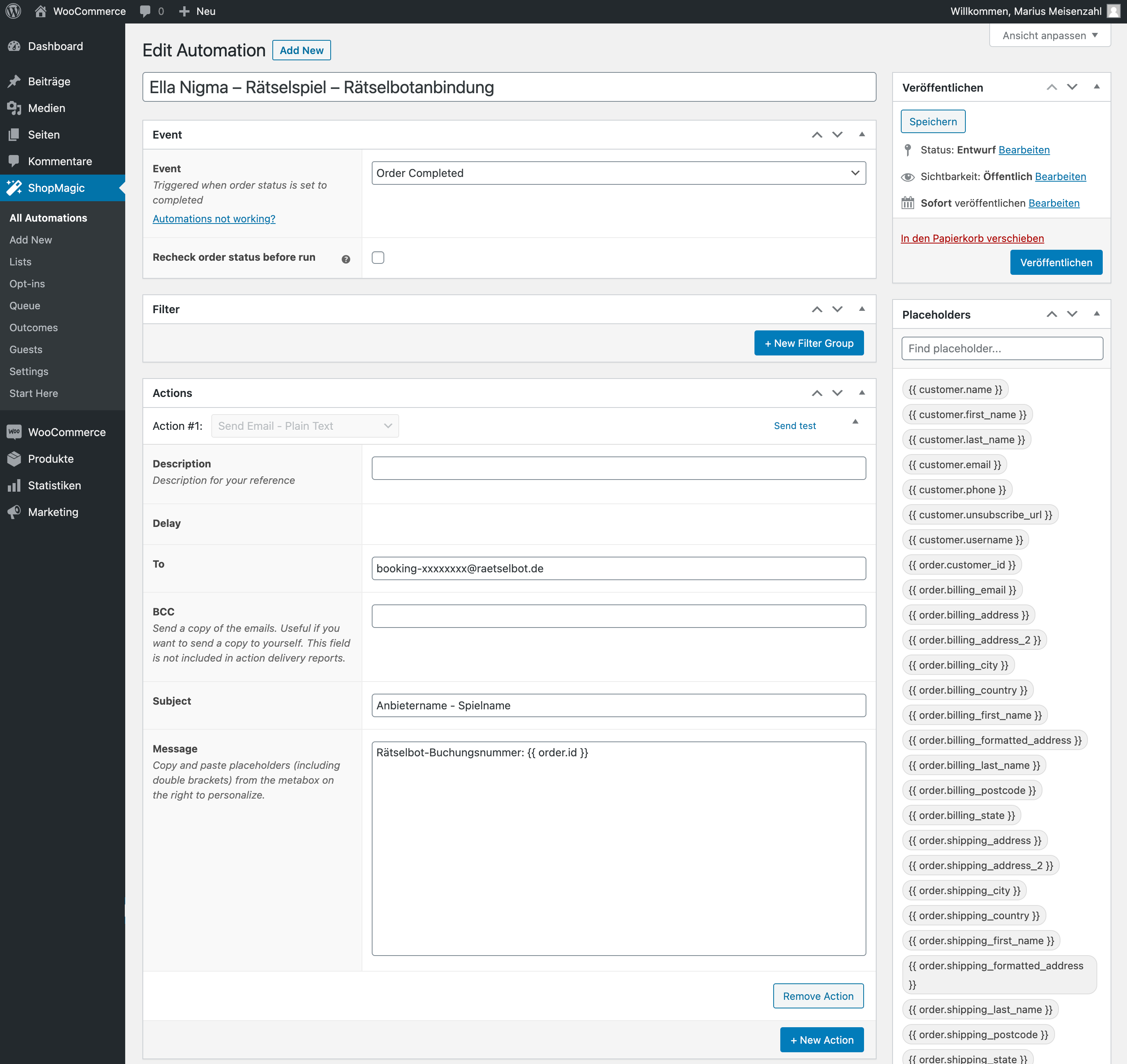 Die Integration von WooCommerce erfolgt über das Plugin ShopMagic. Das Plugin kann über die Suchfunktion in WordPress gefunden und installiert werden. Wenn du Hilfe bei der Installation benötigst, klicke hier.